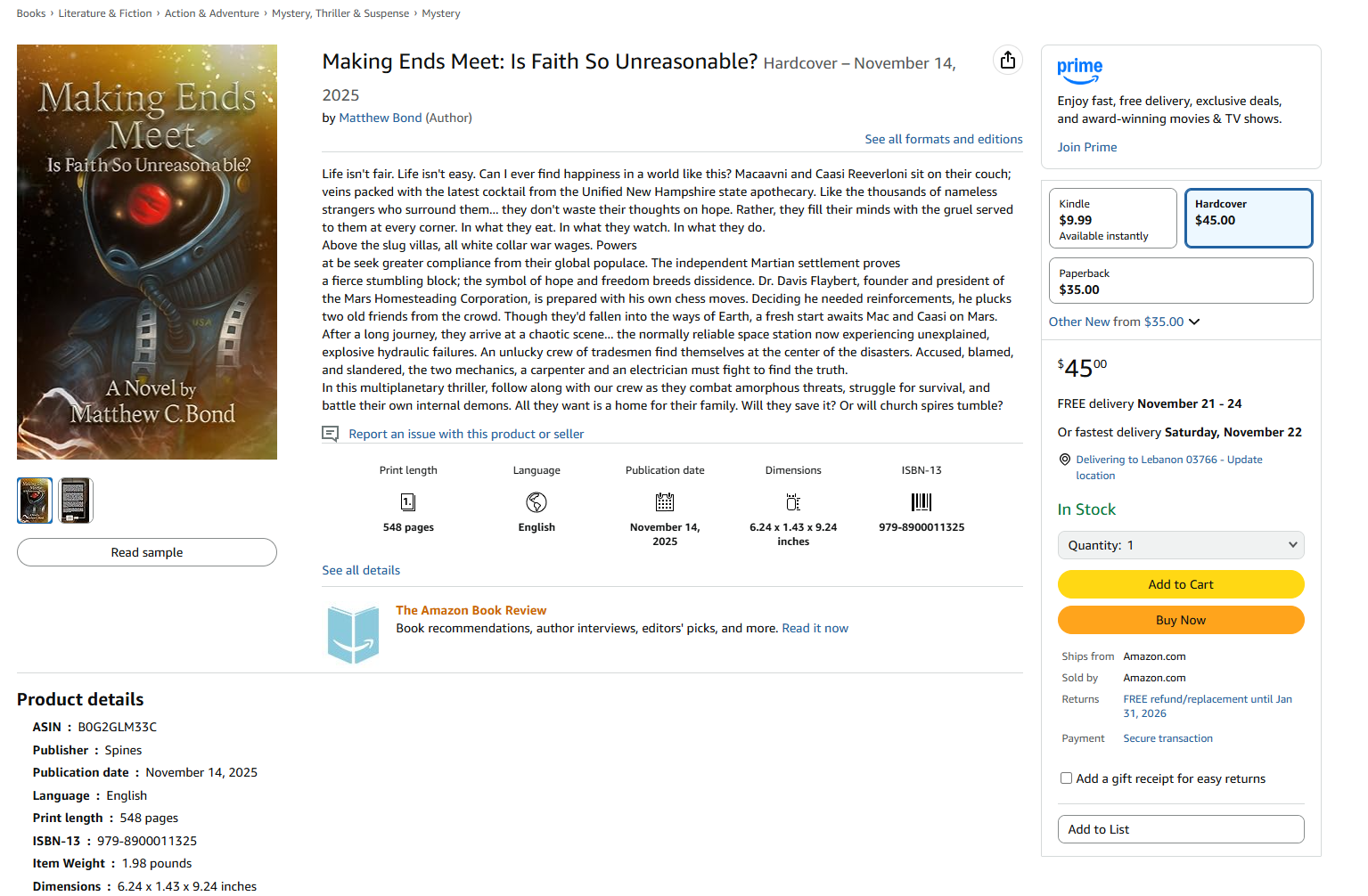 Order your copy of Making Ends Meet on Amazon today! Purchase on Amazon Iād love to hear what you think, so be sure to leave a review! Happy reading, and I hope you enjoy!Audiobook coming soon! Newsletter Signup MEM Blog